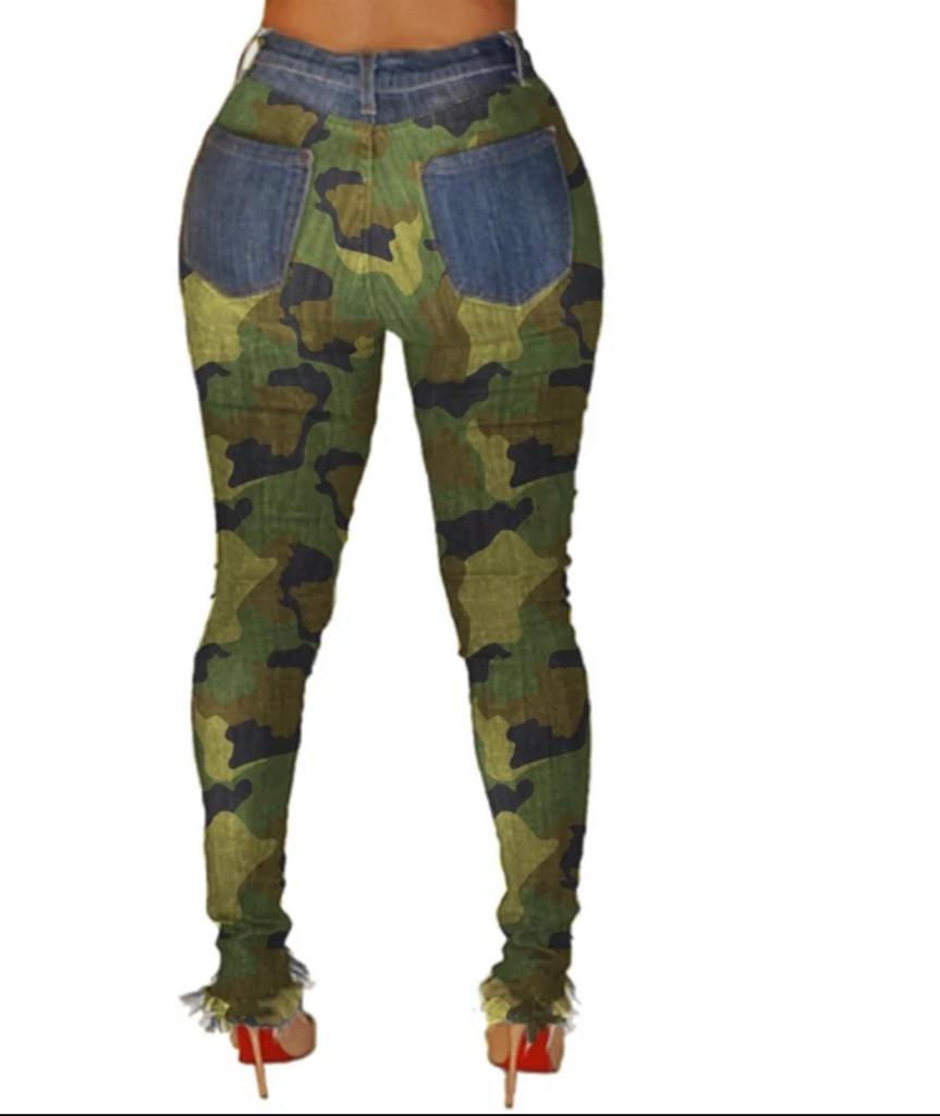 CAMOUFLAGE PRINT HOLE SPLICED SKINNY JEANS